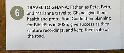 This morning, after we opened two weeks of held postal mail, Beth showed the February 2025 Prayer Guide from OneWay.