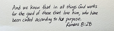 Yet…. Like the situation with Augustine, even these difficult events strengthen our faith. In the hours before our accident, as I zigzagged around pot holes and motos driving south from Nkwanta, Cyrus, Beth, and I were discussing Romans 8:28. It is one of those verses that cuts immediately to the deepest of theology.