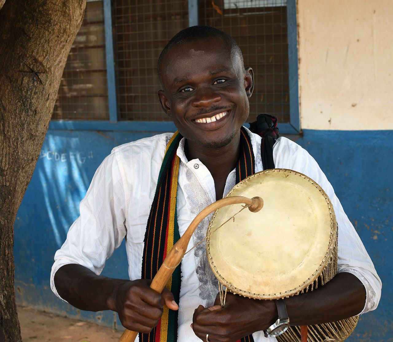 Well, after two days of travel, it was finally time to get to work. Patricia is a Dagomba nurse, and had prepared detailed notes for her passionate, health lectures on Cholera, Malaria, Meningitis, breast cancer, prostate cancer, Ebola, Tuberculosis, and HIV, just to name a few. She arrived with a large smile, ready to help. Everyone, when they first step up to a black carbon fiber tripod with large microphone angled up at their face, and a silly-looking white guy hunched over a laptop, studying sound levels, feels a bit intimidated. “Take a small step closer to the microphone”. “Ok, now take one more”. Ok, how about one more”. However, after a few timid steps, Patricia was a Lioness! Her explanations became more passionate with every passing hour as she stood in the blistering heat under a hot metal roof. She provided critical health information in her native language. Her passion and strength was exciting! I, on the other hand, melted into a colorful, but still smiling puddle on the floor.