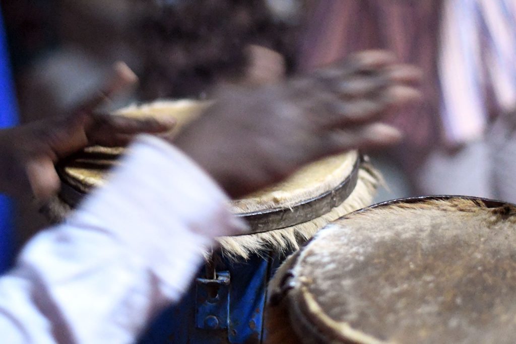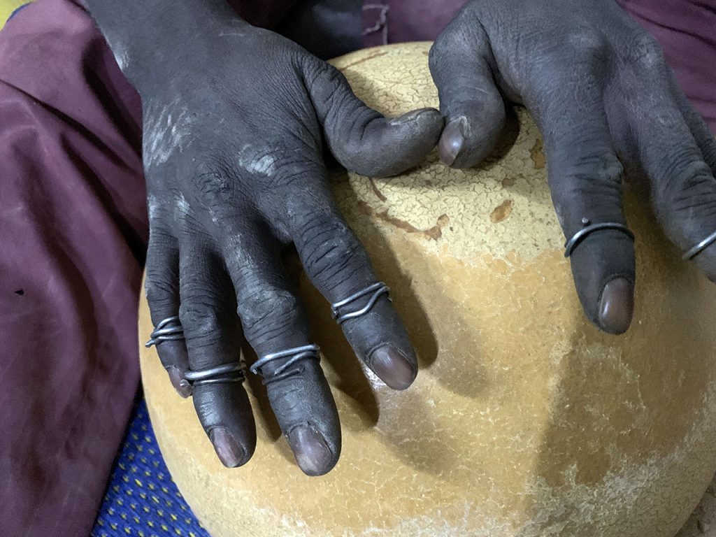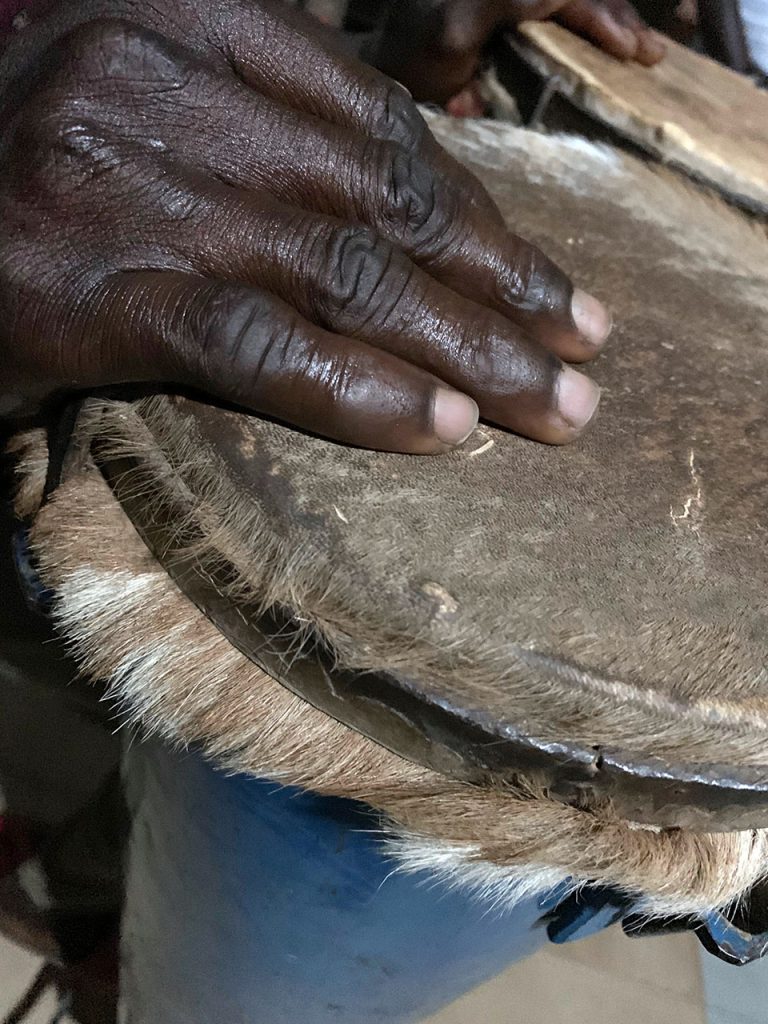 Splashing handfuls of water, men with buckets zigzagged across the church wetting the floor. By 9:00pm, we had many shy Fulani faces and a few large grins ready to begin singing. Two calabash players beat out rhythms. Made from half of a large gourd, the calabash is part drum, part finger percussion. Scraps of wire transform their fingers. Well worn patches on the hemisphere tell stories of the previous celebrations. The drummers palms beat out rhythms that echoed off the bare cement walls. Their fingers tapped and slapped. Made from a single hollowed out log and covered with a goat hide, the bamboo necked guitar was expertly plucked and strummed by one of the Fulani men. The choir was ready.