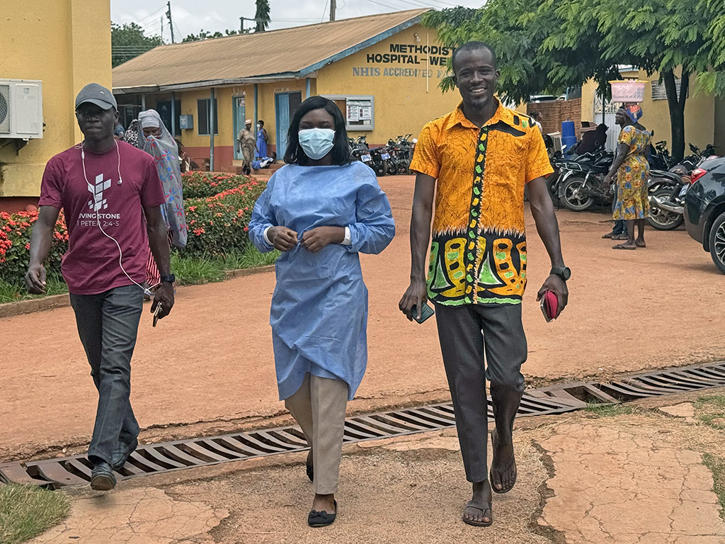 A short stop at the hospital to meet some doctors who had previously attended some of Ray’s classes.We pose for a selfie in front of the obstetrics unit. The doctor in the blue plaid is doing his internship at the hospital, and the young lady on the right is a dentist. We thank them for their dedication to helping the people of Northern Ghana, and pray together.