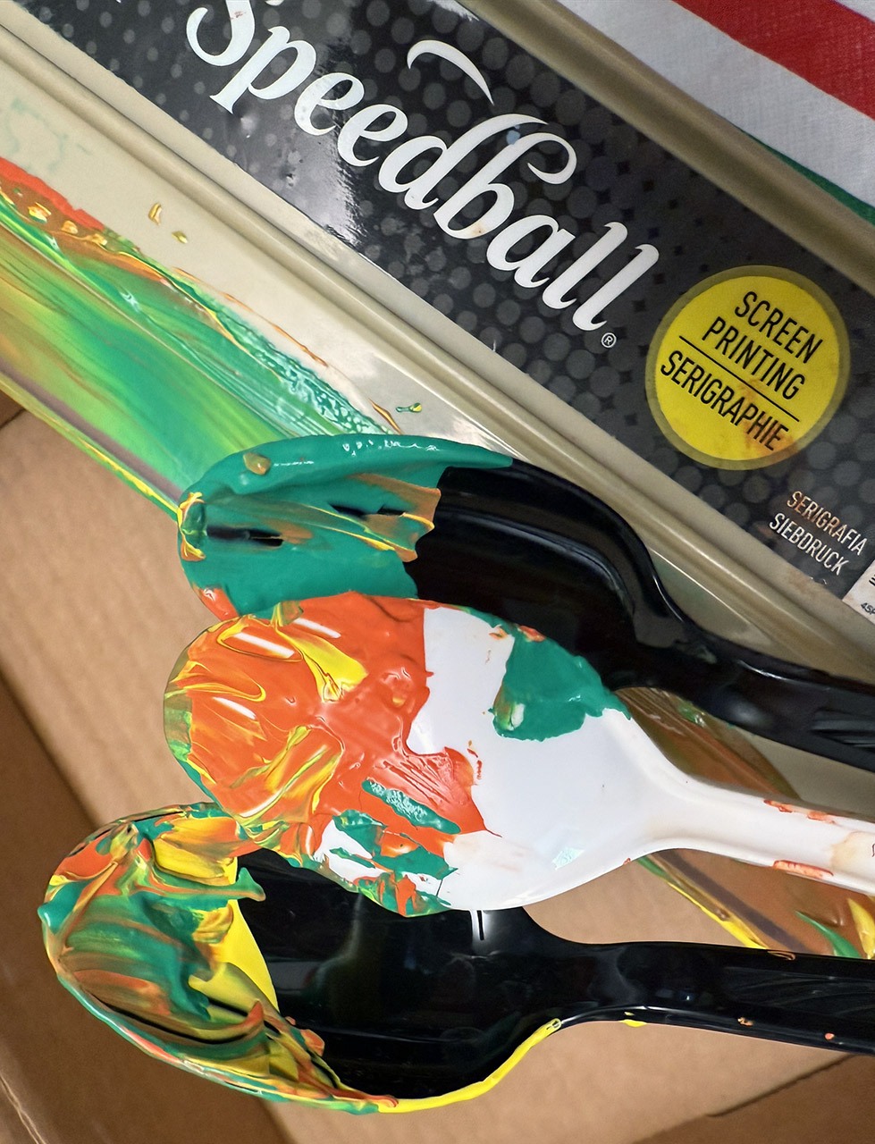 So… last night, before we finished all the packing, I roped Beth into helping me with an art project. Several years ago, our son Paul taught us how to do wax paper screen prints. For the last couple of weeks, we have been imagining a small project. I finished up at 1am last night, and this morning Beth and I ran the project through the washer and dryer, finishing about 45 minutes before LVH (thank you!) took us to the airport. No matter how long your packing list, make room for creativity and fun. When we get to Ghana, we will show you how they turned out.