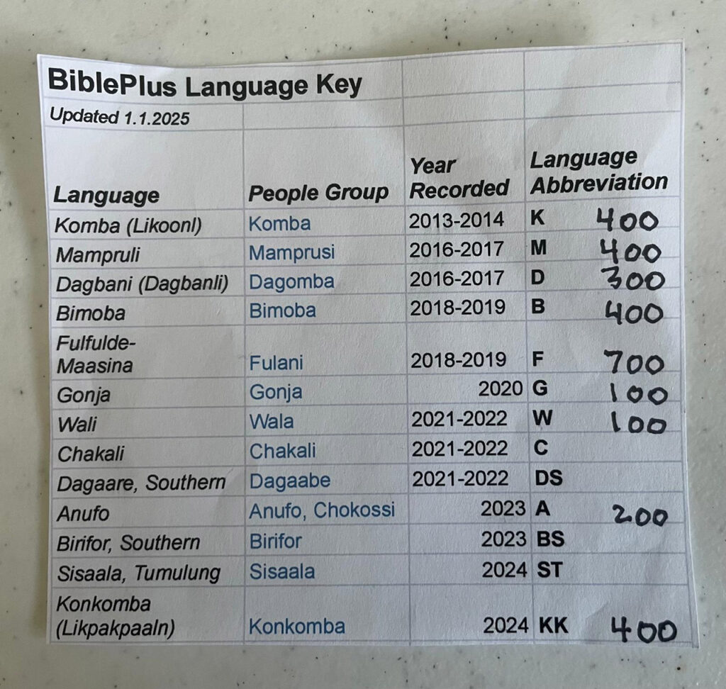 From small rural churches in Virginia and retired grandmas in Batavia to school kids collecting nickels and dimes, partners in the work have provided the resources to buy the equipment used each day in Ghana. In his letter to the church in Ephesus, the Apostle Paul describes those who “equip the saints for the work of ministry”. We are thankful for the broad and diverse team that makes it possible for everything from armored motorcycle jackets and helmets to water filters and microSD cards to equip the workers, “the saints”. Over the last 12 years, more than 31,000 solar or microSD versions of BiblePlus in 13 languages have been donated. Thank you!
