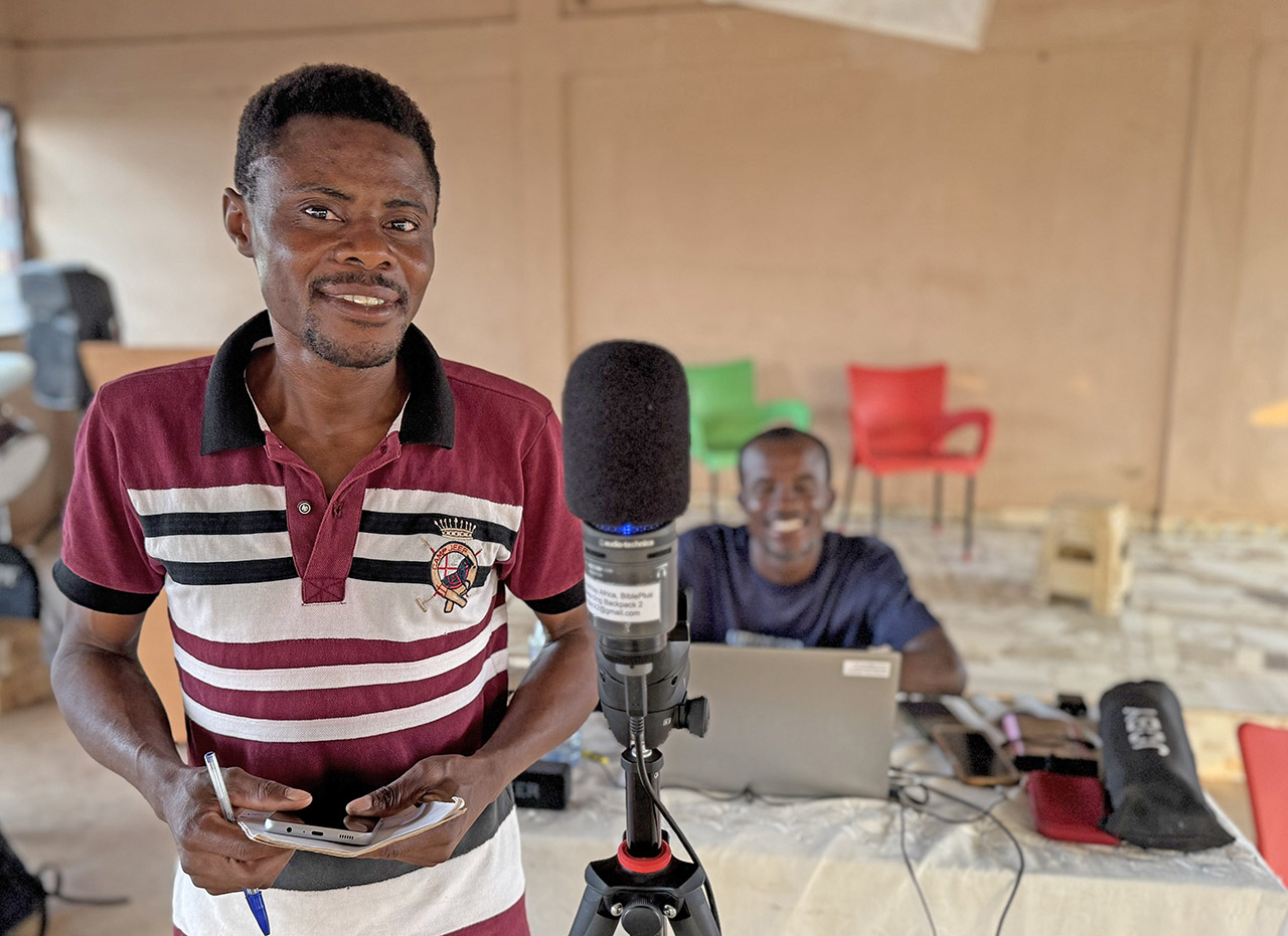 Beth and I record jubilant church choirs singing in their indigenous musical styles, nurses sharing community health information on topics such as malaria, diabetes, AIDS, and tuberculosis, Bible stories shared by men and women using the language and style of their unique culture, and prayers, testimonies, and teachings by local pastors. Recorded outside under mango trees, in traditional mud and thatch homes, or in small churches, their voices represent the hearts and authentic faith of people where they live, in the language they speak at home and on their farms.