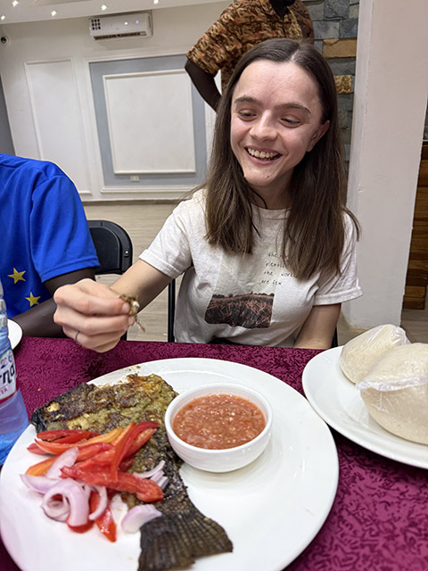 The long day (Saturday) was topped off with fish, banku, yam fries, and spicy “peppa” sauce — all eaten with our hands.