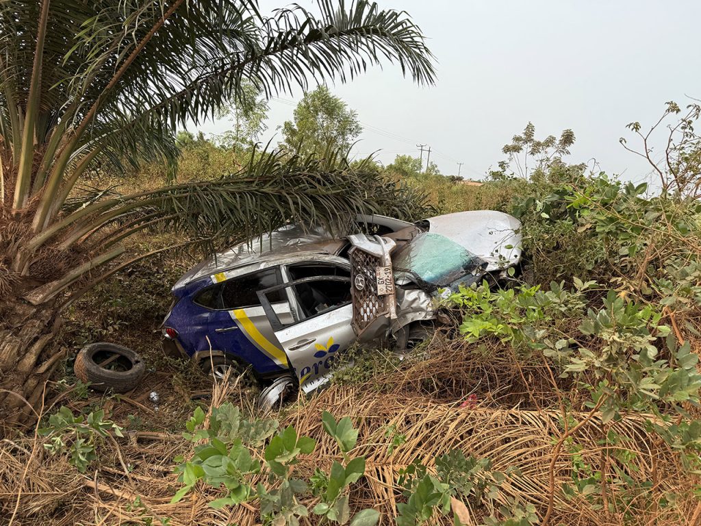 The crash that ended our trip in Ghana was catastrophic. I had started to turn left on a two-lane highway when a car speeding up from behind us swerved and attempted to pass on the left. The police chief investigating the collision believed the other car was traveling 60 or 70 mph when it struck our nearly stopped vehicle. The force of the collision was unimaginable. It sheared off the front wheel of his car and tore our truck’s front wheel from the axle. His car catapulted through the air and landed in a ditch. Fortunately, he was able to crawl out of a window largely unhurt. We were black and blue and disoriented, and Beth had a mild concussion. But we, too, stepped out of the truck and thanked God for His mercy.