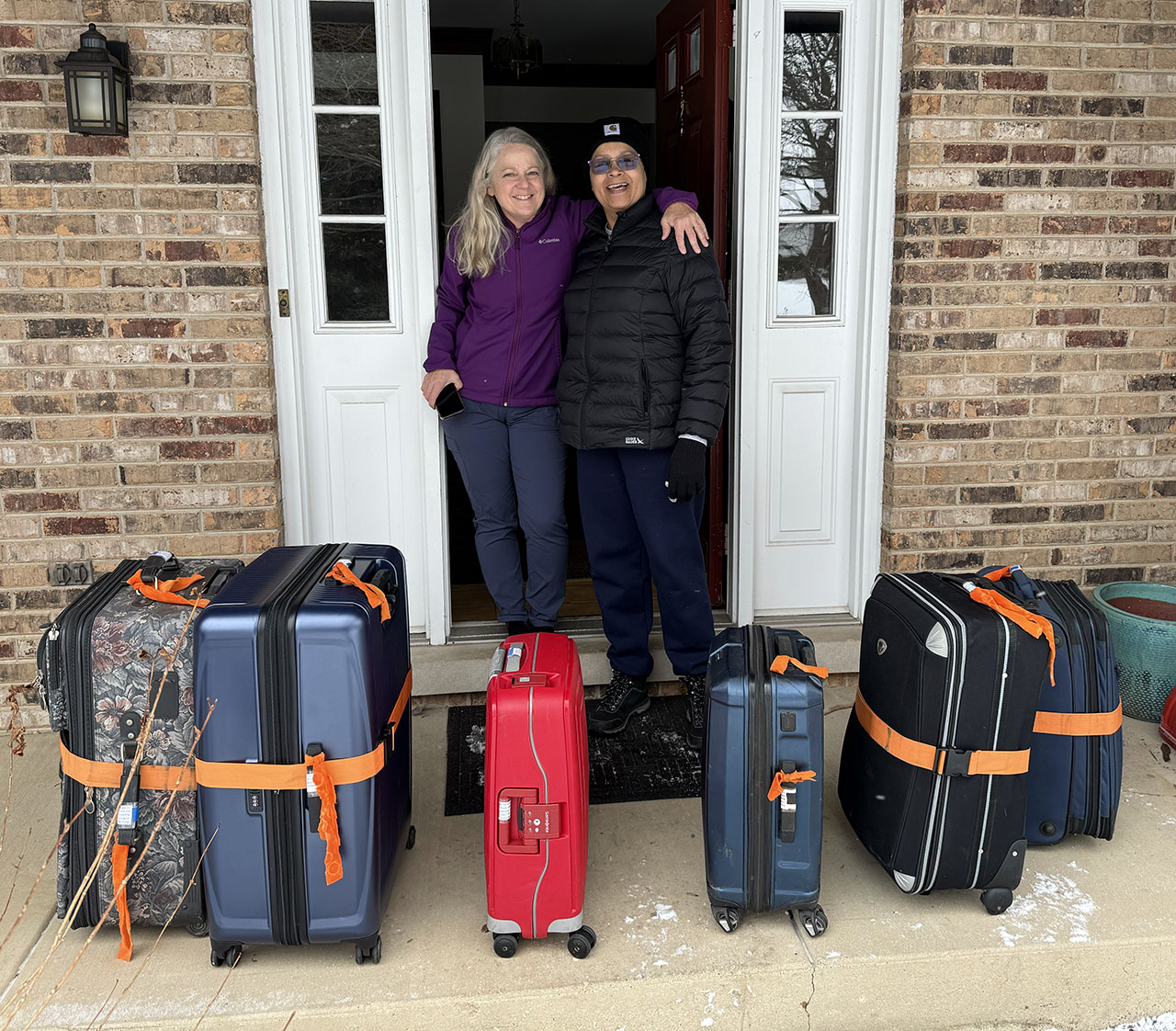 Saturday morning, we went to O’Hare in style. Over the years, we’ve asked friends, neighbors, and staff at OneWay to help schlep up to 500 pounds of gear to the airport. Then it dawned on us: at our local church, we know a retired professional truck driver! She was eager to help and didn’t mind stuffing her back seat and trunk with gear bound for Ghana—everything from knee pads and protective jackets for motorcycle riders up north to soap and toothpaste for the urban missions.
