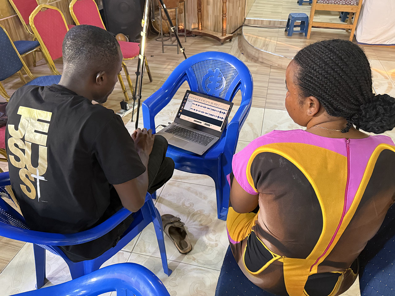 Ceiling fans whirred above us, radios blared from nearby homes, and kids shuttled through the alleys. By stepping up close to the mic and speaking clearly, all the distractions fell away and the team started building the Hausa catalog. We started with Bible Stories and Testimonies. C&C have really polished their skills — Beth and I just watch. They are clearly ready to head to new countries where we might have difficulty traveling.