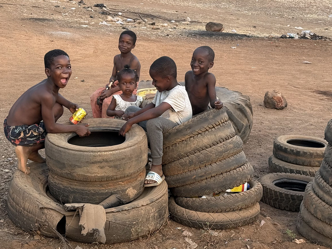 The kids were quick to investigate. C&C got set up for recording while I made friends. Their English was fantastic. The boy above spoke 4 languages — English, Twi, Hausa, and Buli.